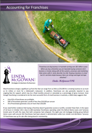 To get your franchise off to a flying start or to boost your current results we invite you to contact us today. You can expect practical, cost effective advice and personal service. Our marketing skills distinguish us from other accounting firms and no job is too big or too small for the team here at Linda McGowan Accounting.