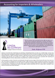 The importing and wholesaling industries are challenging but can be very rewarding. All business owners need to budget, plan, and monitor their business' performance. We know the pitfalls of wholesaling and importing and look forward to working with you to build your business and grow your wealth. Our unique Business Accelerator Process is all about fast tracking your business success and the team at Linda McGowan Pty Ltd offer you a range of accounting, taxation, marketing and business coaching services including:
