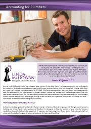 The plumbing industry is challenging but can be very rewarding. All business owners need to budget, plan, and monitor their business' performance. We know the pitfalls of plumbing and look forward to working with you to build your business and grow your wealth. Our unique Business Accelerator Process is all about fast tracking your business success and the team at Linda McGowan Pty Ltd offer you a range of accounting, taxation, marketing and business coaching services including: